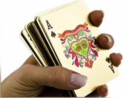 Hvis du leder efter holdbare plastikkort med et premium-look, er dette gyldne sæt et fremragende valg til både dagligt spil og særlige lejligheder.