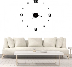 Det er også en fremragende gaveidé. Du kan tilpasse urets størrelse efter dine behov fra 70 cm til 130 cm. Det er nemt at installere takket være de selvklæbende elementer, som er ideelle til glatte overflader.
