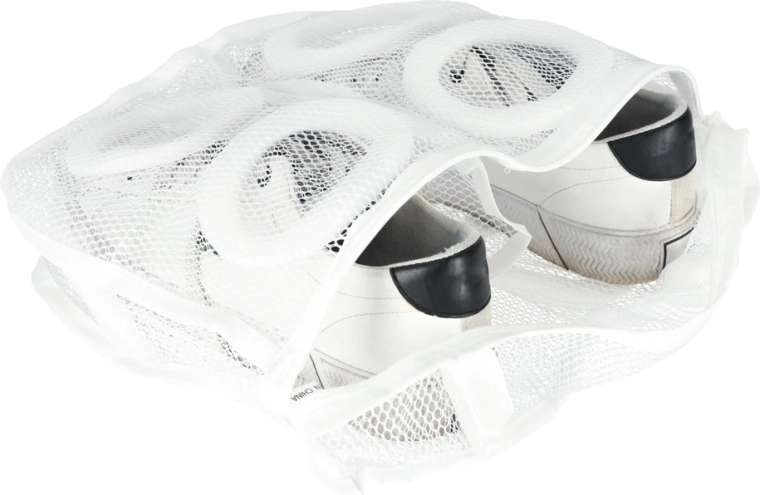 Den fine mesh lader vand og vaskemiddel passere, og lynlåslukningen holder skoene sikkert på plads.