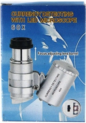 Lommemoskop med 60x forstørrelse og LED UV-belysning