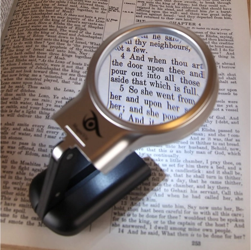 Den klare 60 mm linse giver jævn 3× forstørrelse til behagelig læsning af lille tekst og inspektion af detaljer på frimærker, mønter eller ved reparation af elektronik.