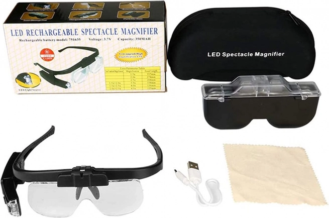 Det integrerede batteri oplades bekvemt via USB, så du slipper for batteriskift. Hele sættet er placeret i et elegant etui med lynlås og lomme til tilbehør – ideelt til sikker transport og som en stilfuld gave. Luppen er et fremragende valg til reparation af elektronik, urmagerværk, gennemgang af mønter og frimærker samt fint modelarbejde.