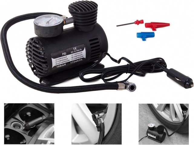 Den bærbare 12V mini kompressor er et ideelt værktøj til at holde det optimale dæktryk og til oppustning af forskellige genstande. Denne kompakte kompressor er nem at bruge og let at opbevare i bilen.