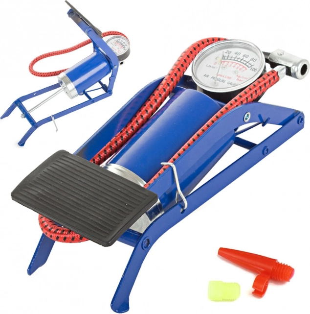 Fodpumpe med en-cylindret stempel er en uundværlig hjælper på rejsen, uanset om du har brug for at pumpe dæk på bil, cykel, motorcykel eller bold. Denne robuste og holdbare pumpe er yderst effektiv takket være det en-cylindrede stempel og specielle medfølgende spidser til forskellige formål.