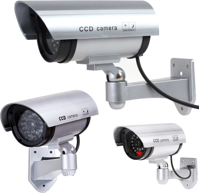 Solardrevet dummy-overvågningskamera med blinkende LED og PIR-sensor