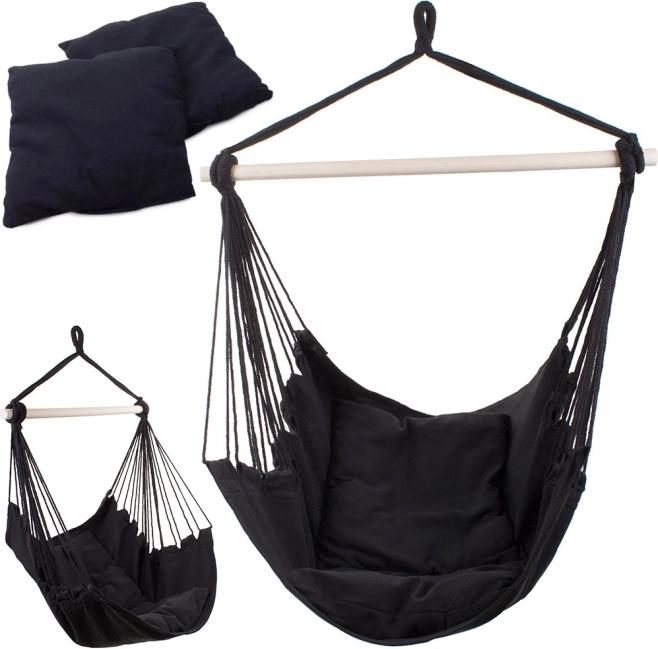 Nyd afslapning i en brasiliansk hængestol, der kombinerer holdbarhed og stil. Lavet af højkvalitetsmateriale, er den både solid og åndbar, hvilket sikrer komfort på varme dage. Takket være trærammen er dens konstruktion sikker og stabil.