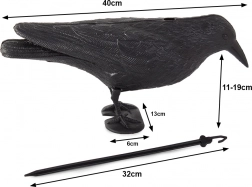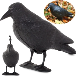 Figuren er lavet af vejrbestandig, holdbar plast, så den tåler regn, sol og vind. Skræmmeren er let og kan nemt flyttes eller hænges på en lang krog efter behov. Udover sin afskrækkende funktion fungerer den også som en stilfuld havendekoration.