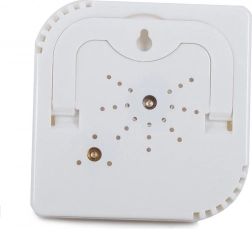 Enheden har en støtteklap til placering på bord eller hylde samt et ophængshul til vægmontering. Det universelle hvide design passer ind i enhver indretning og i tekniske omgivelser.