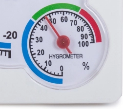 Hold et optimalt indeklima hjemme og på arbejdet. Dette analoge termometer og hygrometer måler pålideligt temperaturen fra -20 °C til +50 °C og den relative luftfugtighed i området 0–100 % RH. Takket være to store urskiver kan du hurtigt tjekke de aktuelle forhold med et enkelt blik.