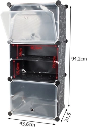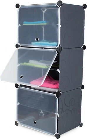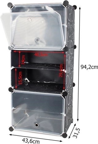 Med denne modulære hylde kan du altid have dine sko og tilbehør pænt organiseret. Skabet består af tre segmenter, er let og samtidig stabilt. Den modulære konstruktion muliggør nem montering og fleksibilitet i opstillingen efter dine behov. Metalrammerne samles enkelt ved hjælp af ABS forbindelseselementer.