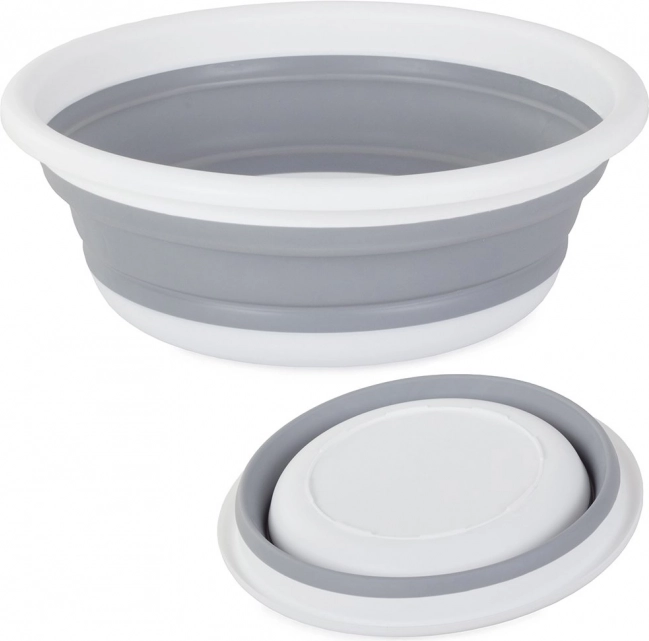 Få mere plads takket være det smarte sammenklappelige design. Uanset om du har et lille køkken, en campingvogn, eller blot ønsker at holde udstyret pænt organiseret, er denne skål et ideelt valg. Udfoldet rummer den 9 liter, og sammenklappet er den kun 4 cm høj, så den passer i ethvert skab eller skuffe.