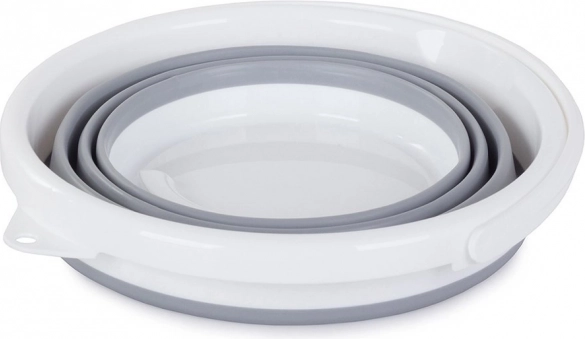 Den sammenklappelige silikonespand med en kapacitet på 5 liter kombinerer holdbare silikonevægge med en solid plastbund og øverste kant for sikker stabilitet. Efter brug kan den nemt foldes sammen til en kompakt højde på 5 cm, så den fylder minimalt i hjemmet, bilen og campingvognen.