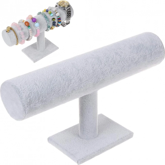 Elegant stativ til smykker med en blød ruskindsoverflade holder dine ure, armbånd og andre accessories pænt organiseret ét sted. Takket være den brede rulle rummer den flere stykker, har en stabil konstruktion, er let, nem at rengøre og passer perfekt i soveværelset, på toiletbordet, i udstillingen og til præsentationer.