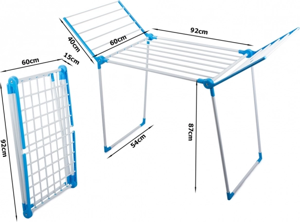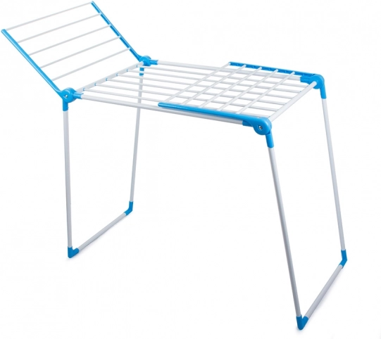 Det store tørrestativ tilbyder plads til op til 13 meter tøj takket være det solide design, der er modstandsdygtigt over for væltning. Det er udstyret med 2 uafhængige vinger med hver 5 stænger og en hovedhylde med 8 stænger. Med de emaljerede og glatte stænger glider tøjet ikke og fordeles jævnt.