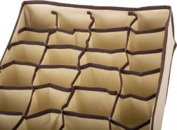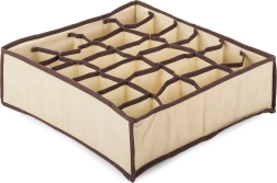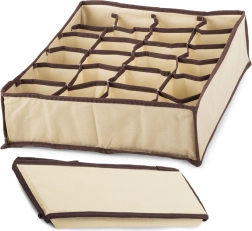 Denne praktiske organisator er ideel til at holde orden i dine skuffer og skabe. Den består af 24 rum, der tillader effektiv kategorisering af tøjet. Takket være dens lette tekstilkonstruktion er den nem at transportere og kan let placeres i forskellige opbevaringsrum.