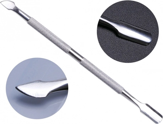 Værktøjet til neglebånd og negle er lavet af kvalitets rustfrit stål, som garanterer lang holdbarhed og mulighed for sterilisering. Dets to skarpe ender sikrer præcis fjernelse af neglebånd og fortykket hud.