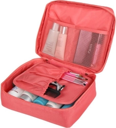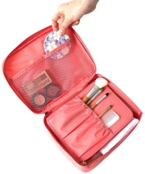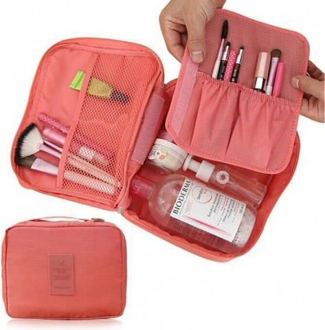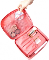 Denne praktiske kosmetiktaske tilbyder et rumligt hovedrum sammen med to netlommer. Skillevæggens start er med velcro og muliggør udvidet kapacitet. Ideel til rejser, fordi den optager minimal plads.