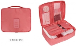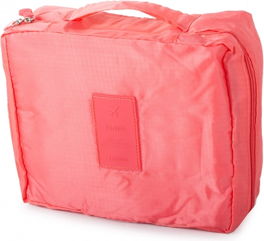 Kosmetiktasken har også et behageligt håndtag, der gør det let at bære den.