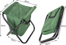 Stolen foldes hurtigt ud og sammen, er kompakt i sammenklappet tilstand og let at transportere. Håndtagene gør den nem at håndtere, og det grønne design passer perfekt ind i naturen. Ideel til fiskeri, udflugter, festivaler, haven og stranden.