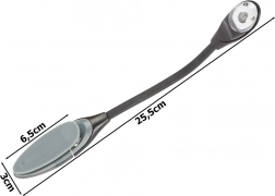 Den fleksible hals giver præcis justering af lysvinkel og -højde. Den holdbare klips fæstner lampen sikkert til bog, hylde, bordplade eller sengegavl. Takket være strøm fra 2× CR1220 er lampen fuldt mobil og klar til at komme med på farten.
