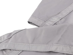 - forstærkede, overstiksyede kanter; forstærkede hjørner; sejl syet af to dele (midtersøm)