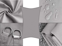 Nyd behagelig skygge og et tørt ophold selv under byger. Det rektangulære solsejl 3 × 2 m i elegant grå kombinerer holdbar 180 g polyester med forstærkede kanter og hjørner for lang levetid. Vandafvisende finish og UV-beskyttelse sikrer driftssikkerhed i skiftende vejr, og sejlet tørrer desuden hurtigt.