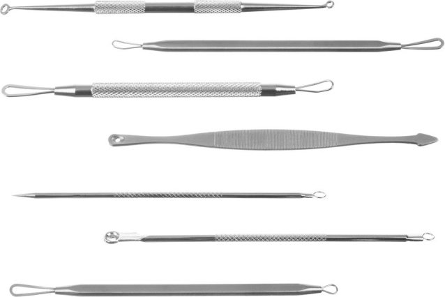Dette praktiske sæt indeholder 7 dobbeltsidede komedonværktøjer (i alt 14 arbejdsender) til skånsom og præcis rensning af huden. Større løkker hjælper med bumser og hvide komedoner, mens mindre løkker og spidser er ideelle til hudorme på vanskeligere områder. Rustfrit stål er holdbart, hygiejnisk og let at sterilisere.