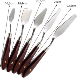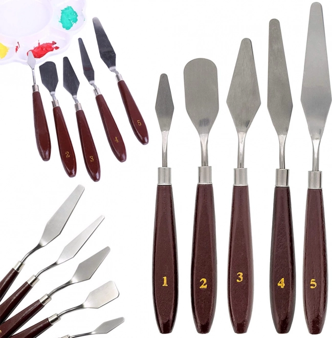 Det komplette sæt med fem paletknive dækker blanding på paletten, påføring af tykkere lag maling samt skabelse af relief-effekter og skarpe kanter.