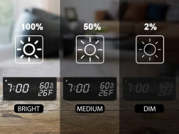 Indstil tre uafhængige alarmer og vælg skærmens lysstyrke i tre trin: 100 %, 50 % eller 2 % – både dag og nat.