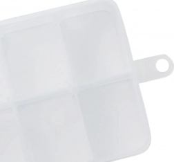 Den modulære løsning gør det muligt at indstille minimum 4 og maksimum 10 rum – du tager blot skillevægge ud eller sætter dem i. Den gennemsigtige udførelse giver hurtigt overblik over indholdet, mens en tætsluttende clip holder låget sikkert på plads under transport.