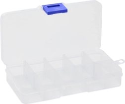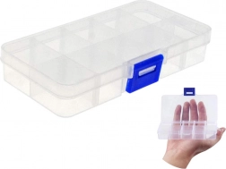 Universal opbevaringsboks med aftagelige rum er ideel til sortering af småting i hjemmet, værkstedet og på farten. Takket være de kompakte mål 13 × 7 × 2 cm passer den i taske eller rygsæk, og ophængningshullet gør det let at placere den på væggen inden for rækkevidde.