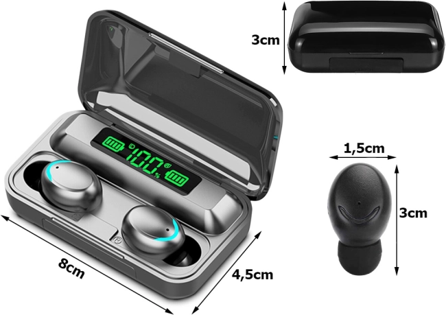 Vores trådløse hovedtelefoner er perfekte til sport, udendørsaktiviteter og daglig brug. Med praktisk powerbank kan hovedtelefonerne ikke kun opbevares, men også beskyttes og oplades, uanset om du bruger en eller begge hovedtelefoner samtidig. Hovedtelefonerne er kompatible med en bred vifte af enheder takket være deres Bluetooth V5.0 + EDR teknologi.