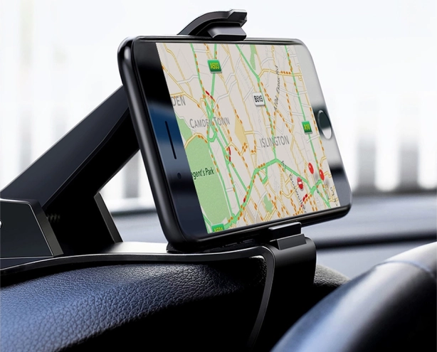 Den universelle telefonholder til instrumentbræt er designet til at passe i de fleste biler og sikre sikker installation af din smartphone. Med let montering og klemmer med gummibelægning sikrer den fast greb og nem håndtering.