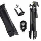 - stativ, telefonholder, Bluetooth-controller, etui, original emballage