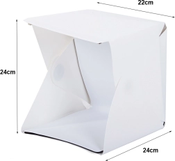 Få rene og professionelle produktbilleder med en skyggeboks, der diffuserer lyset og minimerer reflekser og hårde skygger. Neutralt LED‑lys fremhæver detaljer og farver uden uønsket farvestik. Ideel til webshopfotos, sociale medier og hobbyfotografering.
