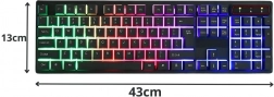 Dette gamingtastatur kombinerer moderne design og ergonomi med praktiske funktioner til daglig brug. Fuld størrelse med numerisk blok gør arbejde i regneark og gaming lettere, mens stille membrankontakter sikrer uforstyrret brug selv sent på aftenen. RGB-belysning giver dit setup et markant look og kan nemt tændes eller slukkes med Scroll Lock-tasten.