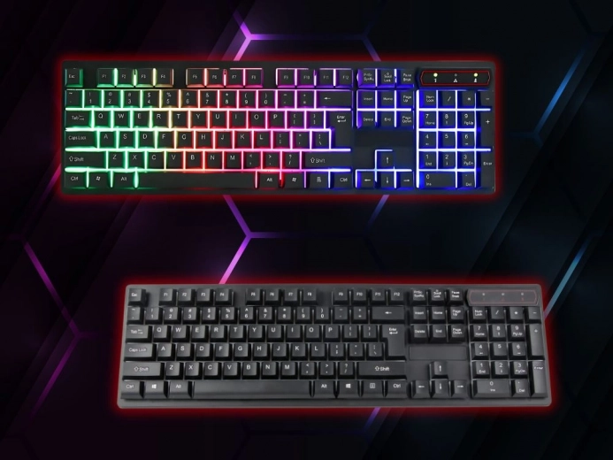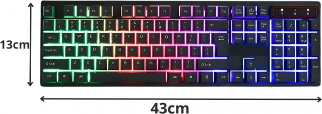 Stilfuldt gamingtastatur i fuld størrelse med numerisk tast giver stille membrantaster, RGB-belysning og behagelig skrivning og gaming i timevis. Takket være anti-ghosting, spildresistens og enkel USB plug & play-tilslutning er det ideelt til både gamere og kontorarbejde.