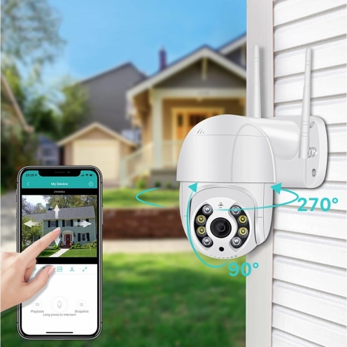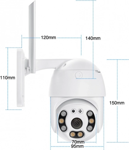 Udendørs WiFi-kameraet er udstyret med synsvinkler op til 270 grader horisontalt og 90 grader vertikalt, hvilket giver et bredt dækningsområde. Med nattetilstand med infrarøde og LED-dioder vil billedet være detaljeret selv i total mørke.