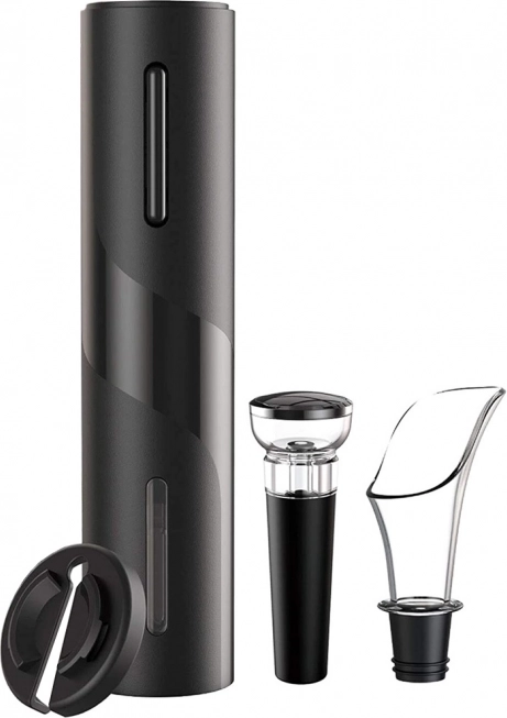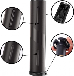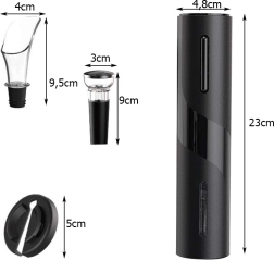 Ikke mere knækket kork eller besvær med en manuel proptrækker. Den elektriske vinåbner åbner flasken på 5–7 sekunder med et enkelt tryk på knappen. Det transparente kammer gør det muligt at følge udtrækningen af proppen, og det elegante sorte design passer perfekt i ethvert køkken eller hjemmevinotek.