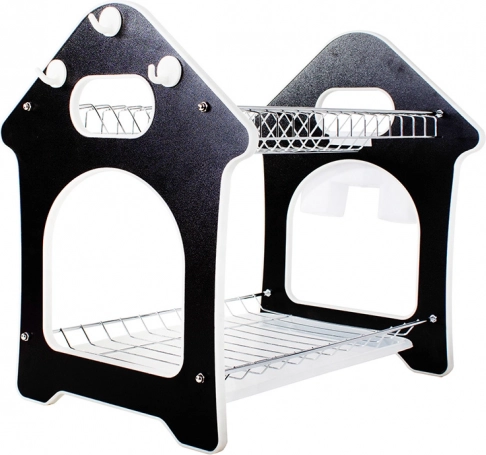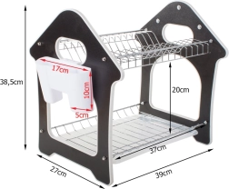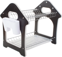 Den robuste kombination af metal og kvalitetsplast sikrer lang holdbarhed selv i krævende miljøer med højere fugt. Drypbakken opfanger vand pålideligt, så bordpladen forbliver ren og tør. Det moderne husformede design giver dit køkken karakter og orden.