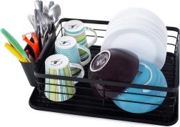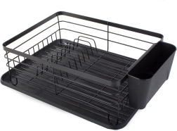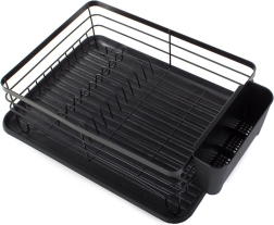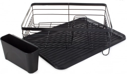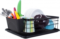 Hold køkkenet rent og overskueligt med et opvaskestativ med rummelig drypbakke. Den stabile metalkonstruktion med pulverlak er modstandsdygtig over for skader og fugt, mens den plastiske drypbakke opfanger vand og beskytter bordpladen. Medfølger gør også en ophængt bestikholder, som kan placeres på enhver kant af stativet.