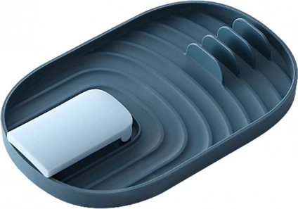 Den blå farve og det moderne design gør denne holder til et stilfuldt og funktionelt tilbehør til dit køkken.