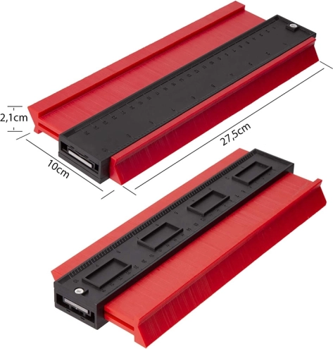 Konturskabelon XL er et uvurderligt værktøj for enhver gør-det-selv person, som har brug for hurtigt og præcist at overføre former til forskellige materialer. Skabelonen er bred op til 275 mm, så den kan håndtere selv større og mere komplekse former. Den er ideel til at spore halvcirkler for rør eller dørkarmens form.