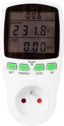 Dette digitale wattmeter leverer præcis måling af energiforbrug og omkostninger. Den store og overskuelige skærm gør det muligt med et enkelt blik at se alle vigtige parametre som aktuel spænding, frekvens og strømforbrug.