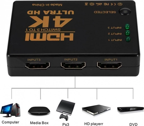 Udvid antallet af HDMI-indgange på dit TV eller din monitor, og nyd problemfri skift mellem konsol, set-top-boks, bærbar eller afspiller. Switchen understøtter op til 4K (3840×2160) ved 30 Hz og Full HD 1080p ved 60 Hz, så skarp billedkvalitet og naturtro farver bevares uden forsinkelse.