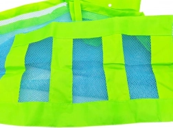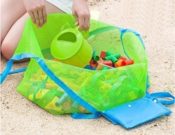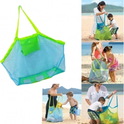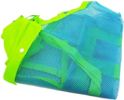 Mesh-konstruktionen holder indholdet ventileret, fremskynder tørring og lader sand falde frit igennem – ideel til strand og pool.