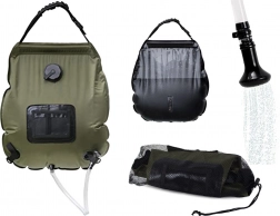 Denne bærbare solbruser er en pålidelig løsning, når der ikke er rindende vand i nærheden. Fyld den, hæng den på en gren eller krog, og solen sørger for hurtig opvarmning af vandet. Den indbyggede temperaturindikator gør det nemt at tjekke, hvornår vandet er ideelt til brusebad.