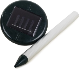 Installationen er hurtig: stik spidsen i jorden og lad solen gøre arbejdet. Til større arealer anbefaler vi at bruge flere enheder med tilstrækkelig tæt placering. Den bedste rækkevidde opnås i fugtig eller leret jord; i tør og sandet jord kan det effektive område være mindre.