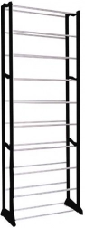 Det justerbare antal niveauer 1–10 og en afstand på 14 cm gør det muligt at tilpasse pladsen til forskellige skotyper. Den sorte ramme med krom ser elegant ud i enhver indretning.