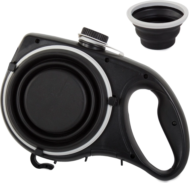 Denne innovative produkt kombinerer hundesnor og sammenfoldelig skål i en praktisk enhed. Den er designet til komfortable og sikre gåture med din hund, og sørger samtidig for nem adgang til vand.